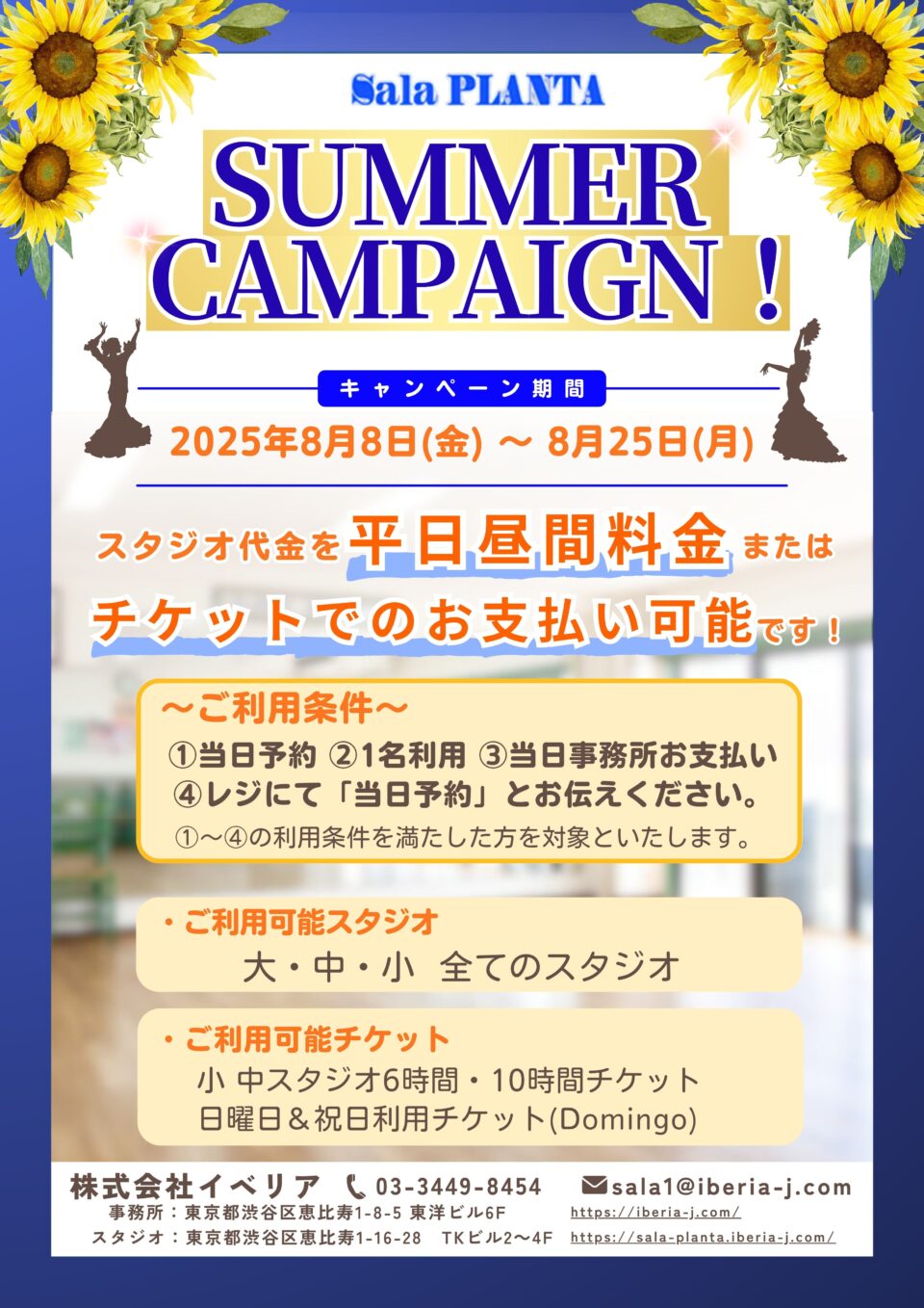 お盆期間のスタジオご利用がお得になるキャンペーンのお知らせです。