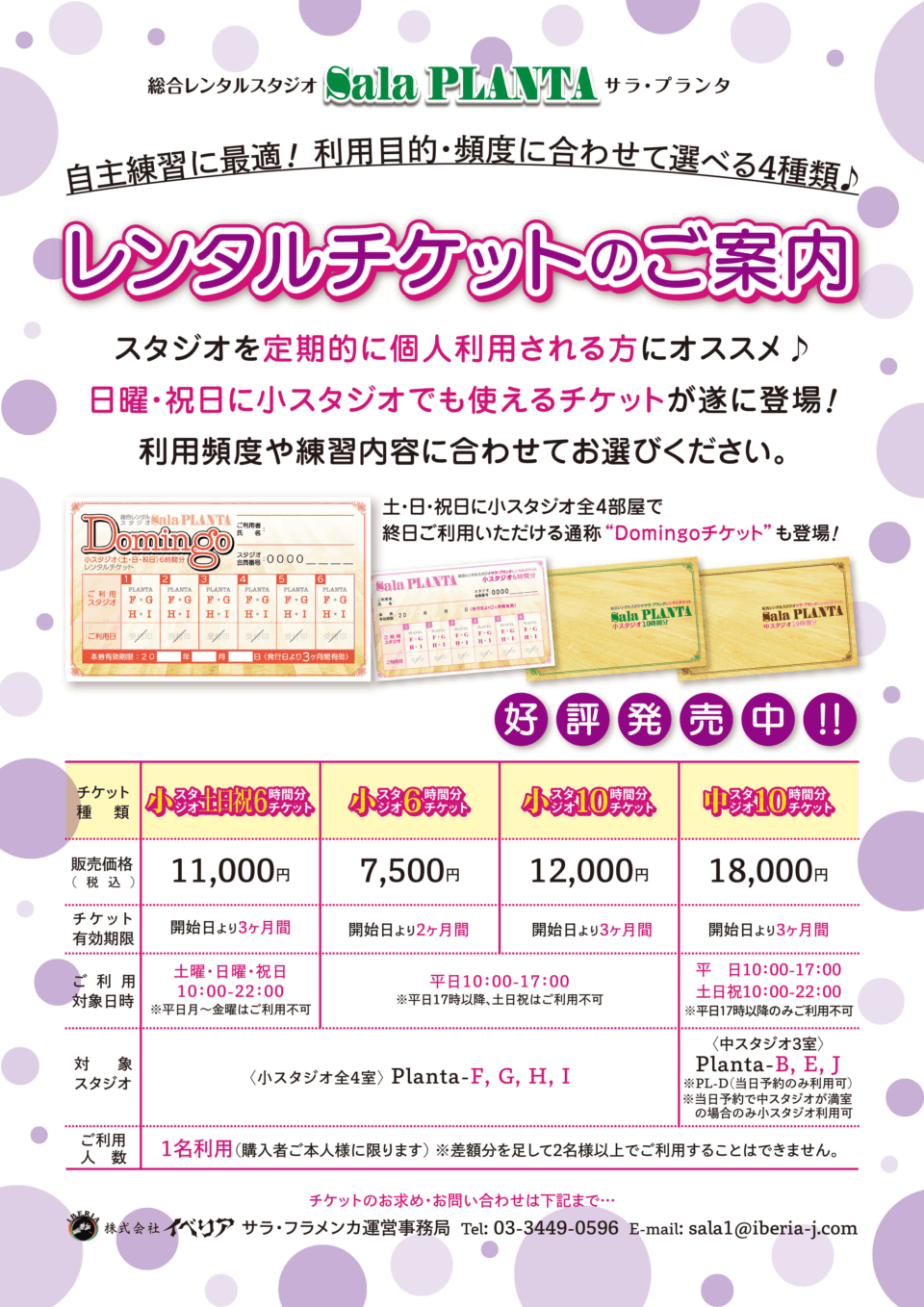 2025年12月1日のご購入分よりスタジオレンタルチケット代金を改定させていただきます。